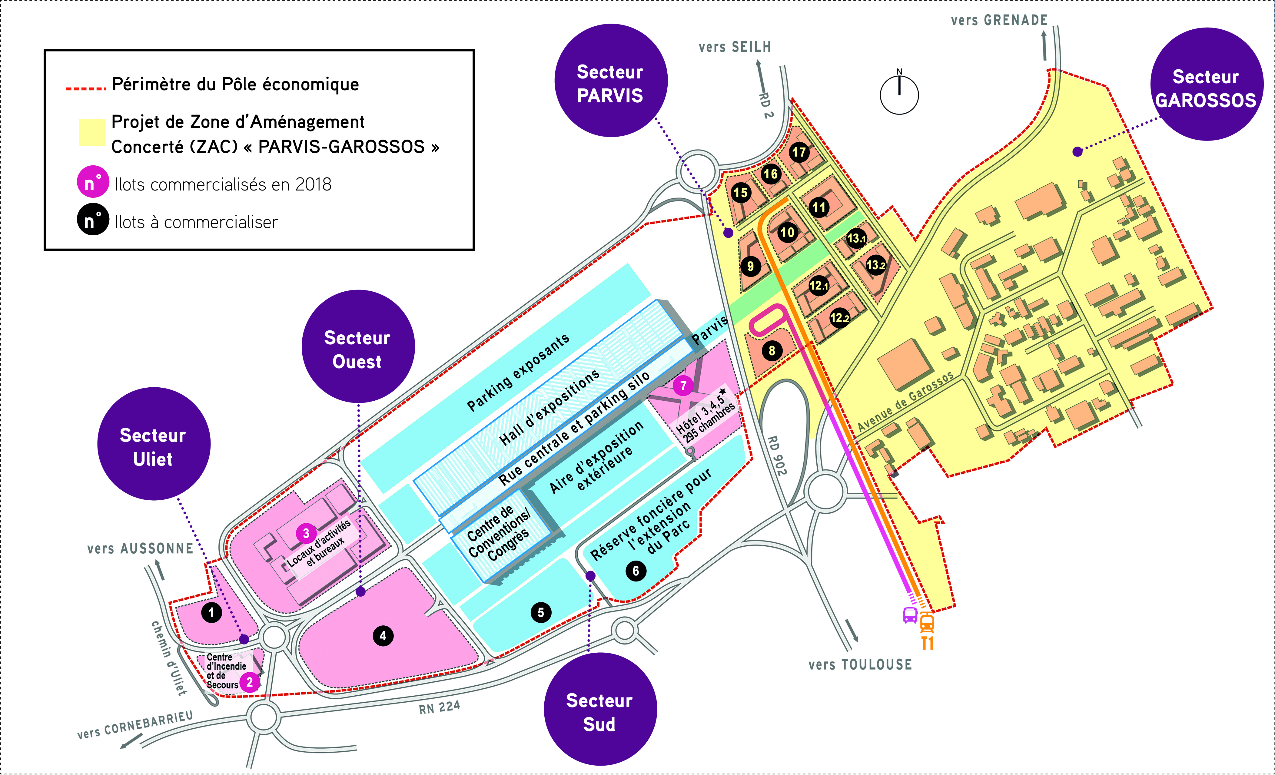 L’opération d’aménagement se divise en 5 secteurs qui composent le Pôle économique :